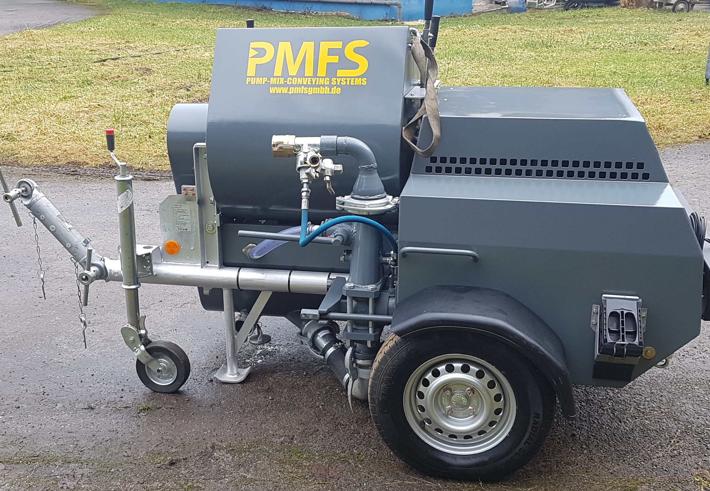 Die kleine, leistungsstarke und wirtschaftliche Anhänger-Betonpumpe P718 zum Pumpen von Beton und Fließestrich.